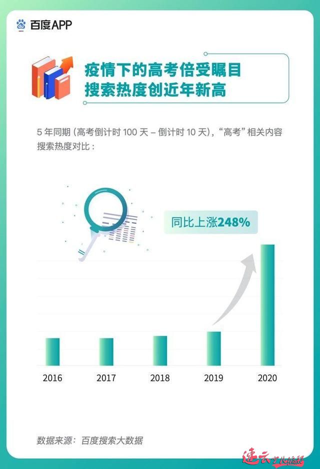 2020年高考有哪些特别的变化?哪些高考话题最受关注?哪些专业今年最火?近日,百度发布《2020年高考搜索大数据报告》(以下简称“报告”),呈现今年高考三大显著变化:考生对“高考”的关注度创5年新高;这届考生面临更大的备考压力;这届考生对医学专业关注